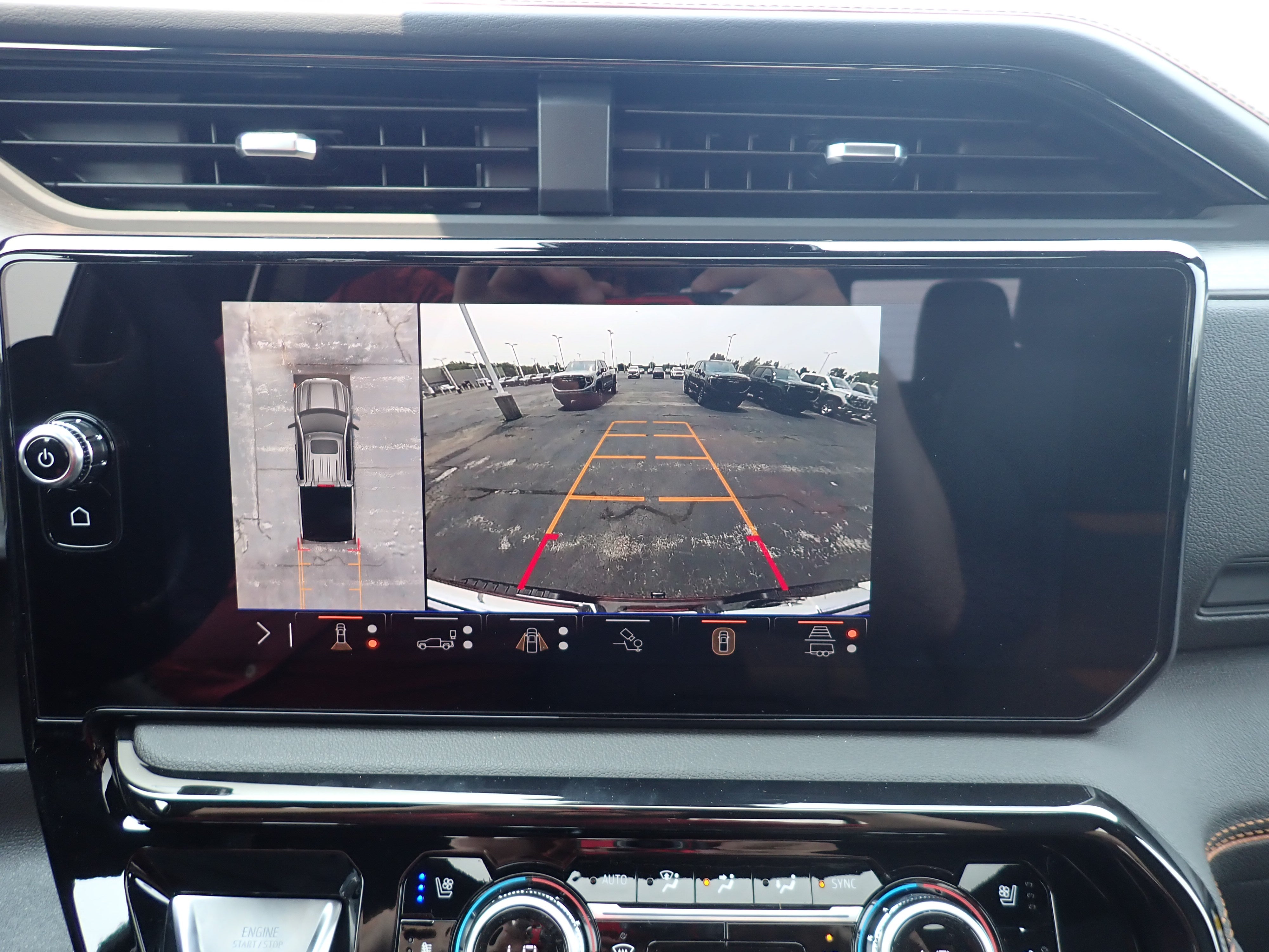 - Allows driver to see inside the cargo bed on the infotainment display to help with 5th wheel or gooseneck hitching and to check cargo